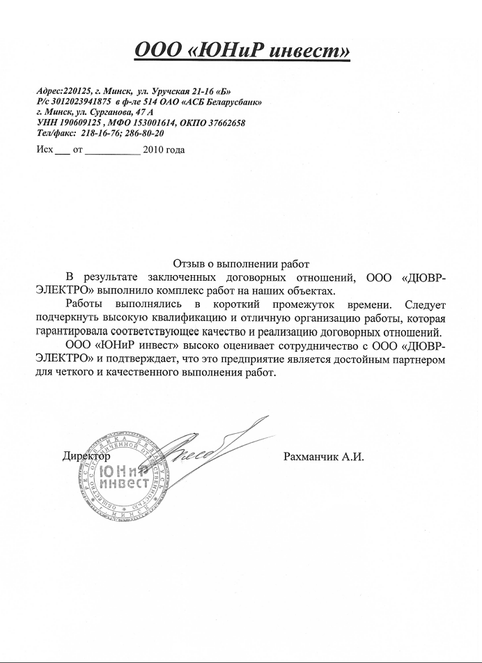 10. Отзывы от компании ООО "ЮНиР инвест"