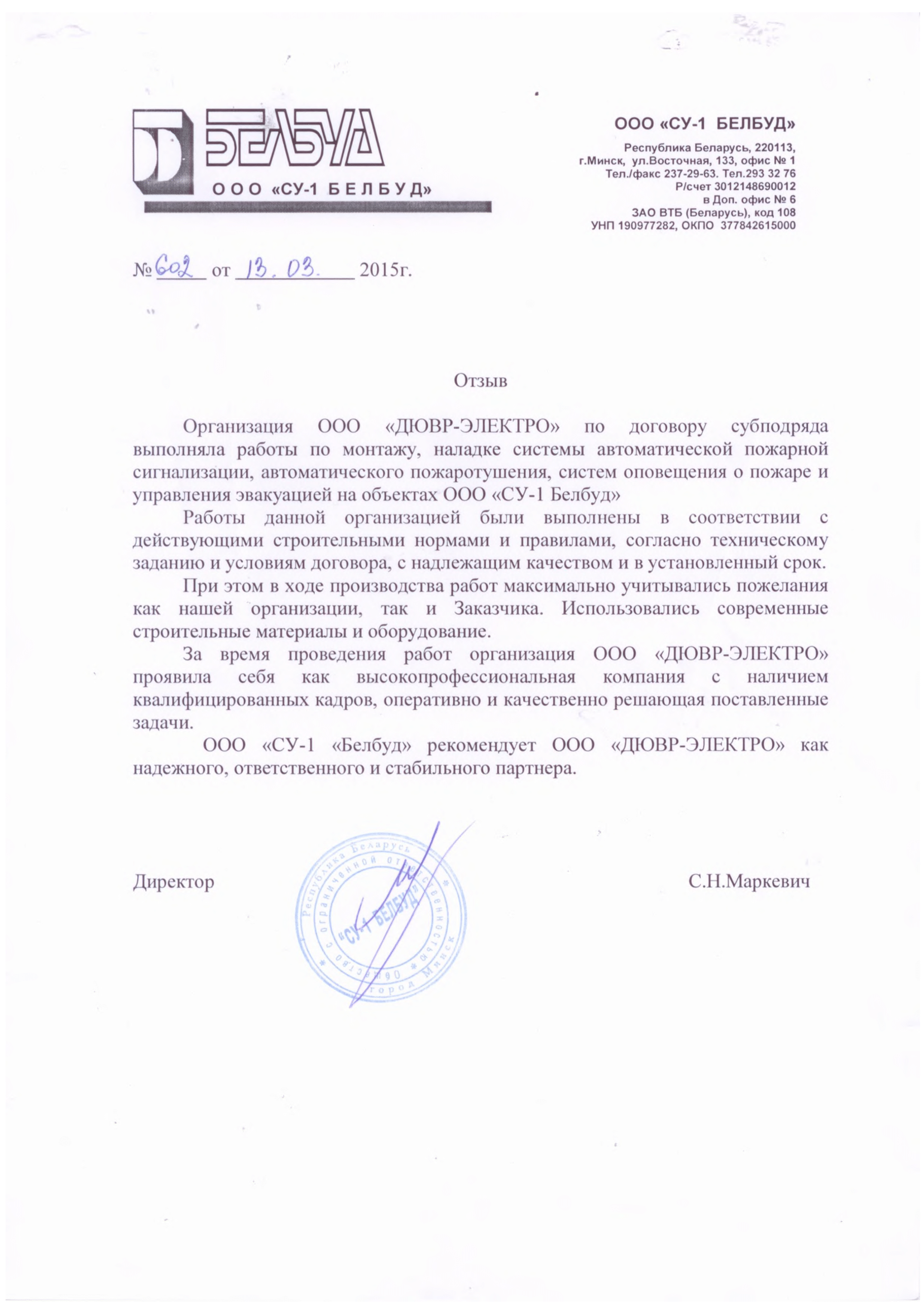 4. Отзывы от компании ООО "СУ-1 БелБуд"
